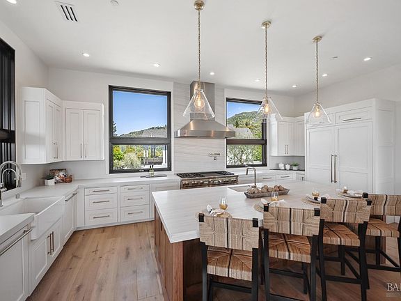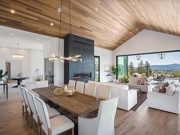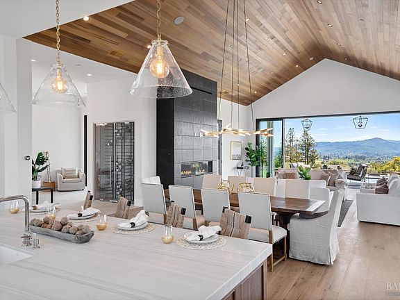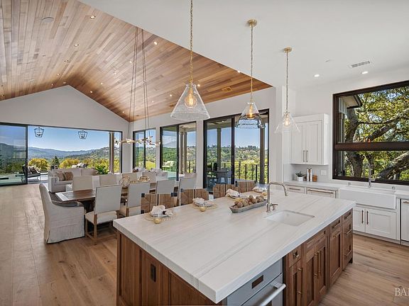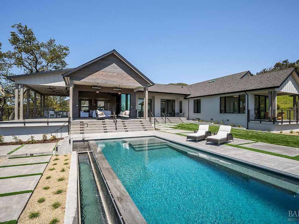 Live the easy life of luxury in this brand new modern farmhouse masterpiece, a Foothills Ranch Estate: 4699 Wallace Road. The home exudes complete serenity with panoramic mountain and green pasture views of beautiful Wine Country captured from every room. The soaring 10 foot floor to ceiling sliding glass walls allow for effortless indoor outdoor living and enjoyment of the California alfresco lifestyle. The main house provides an open floor plan that connects the great room, chef's kitchen, dining and family room while offering pocket doors that lead to the private primary and guest bedroom wing. The wrap-around veranda with built-in kitchen allows for significant outdoor lounging equipped with state of the art cooling fans and heating system. The picturesque infinity edge pool and adjacent built-in fire feature provide for generous gatherings and entertainment, all surrounded by breathtaking views from the 6 acre estate. An additional detached dwelling unit adorns the property offering luxurious guest quarters or private home work office with primary bedroom, ensuite bath, chef's kitchen, living room, terrace and laundry room. Located just minutes from Highway 101, Sonoma County Airport, and Healdsburg/Windsor restaurants, boutiques, and tasting rooms.
