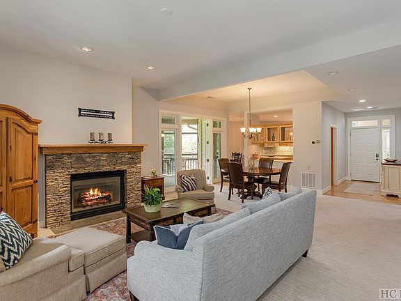 Be tucked away in beautiful Old Edwards Club at Highlands Cove, conveniently located in the Highlands-Cashiers corridor. Featuring three bedrooms and three baths, this impeccable second-story condo provides easy access to all the plateau has to offer. The one-level, well-maintained and tastefully-furnished home is your perfect place to recharge or reconnect with family and friends. The large stone fireplace is complemented by the wooden floors and 10-foot ceilings. A spacious owner's suite includes a custom walk-in closet and French doors to the back deck where the fresh, mountain air awaits. The screened-in porch affords comfort and additional outdoor dining options for those late-night soirees or an early morning coffee overlooking the beautiful golf course and clubhouse. Community water, sewer, and high speed internet is provided. Membership to Old Edwards club is optional. Members will have use of Old Edwards Club amenities which include a full-service dining room and bar, chimney terrace, 18-hole golf course, tennis, fitness center, and an outdoor, heated mineral pool. Additionally, members have the privilege of using the amenities at the adjacent and newly-developed GlenCove community. An organic community garden, farm, a lake with a boathouse surrounded by hiking trails, a 12-hole, par-three golf course, and a recreation barn with bowling, pool tables, ping pong, a children's arcade, and a state-of-the-art golf simulator lounge await your arrival. A four-lane heated lap and children's splash pool, playground, pickleball court, bocce ball, fitness and wellness center with spa services is sure to delight. Members also have access to the world-class amenities at Old Edwards Inn & Spa, including a European-style luxury spa, two additional pools, pool cabana, fitness center and fitness classes. Convenience and comfort are calling!