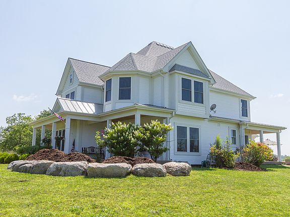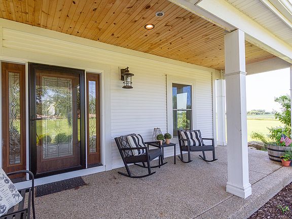 Stunning 4 bedroom modern farmhouse home situated on almost 6 acres in Hampshire~ only 3 years old! The inviting front porch is perfect for enjoying your morning coffee. Step inside to discover meticulously designed living spaces, adorned with high-end finishes, custom details, and exceptional craftsmanship. This home includes formal living and dining room rooms with shiplap, and a den area with built-in shelving. The kitchen boasts gorgeous stone countertops, modern 42 inch white cabinets, pantry cabinet, high-end appliances, large island/breakfast bar, and an eat-in area. The family room with gas stone fireplace is a great space for entertaining. Convenient main level mud room and laundry room with a sink and cabinets for storage. Upstairs showcases a large master bedroom including; vaulted ceilings, walk-in closet with organizers, and an en-suite bath with claw foot tub, double sinks, and an oversized custom shower. The second bedroom has a sitting area and en-suite bath. The third and fourth bedroom share a jack and jill bath with double sinks. 700 square foot attic can be finished to add additional bedrooms or a bonus room. Put your finishing touches on the full basement to add even more living space. Enjoy the picturesque views while relaxing on the patio. Versatile pole barn with a functioning office, chicken coop, and duck house. High capacity well and exterior water well heads. High capacity furnace. Enjoy the tranquility of rural living, while still within easy reach of modern conveniences, shopping, dining, and easy interstate access. Don't miss this chance to make this extraordinary property your own!
