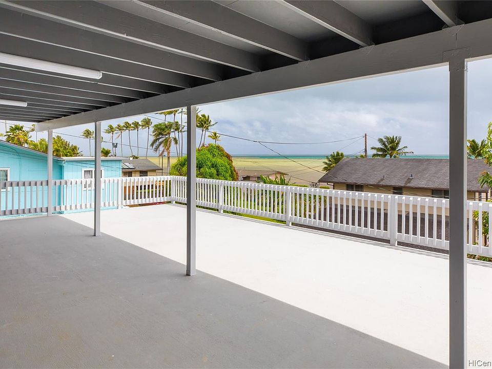 Rarely available near the ocean! This 3 bdr/1 bth unit is located a couple homes away from the ocean. Completely remodeled in 2019. Full kitchen and washer/dryer included. Huge expansive covered lanai overlooking the ocean. Includes 2 open parking stalls. Prime location close to Kaneohe Marine Base, beaches, shopping centers, and highway access. Pets considered.