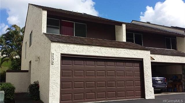 This spacious townhouse is in one of only 2 Kaneohe town home/condo buildings with private garages! It has a loft style master bedroom that overlooks the living room with its high ceilings and tall glass windows for natural light. Kitchen has newer appliances, bathroom vanities have been remodeled and the entire unit was painted a year ago. Laundry room has a full size washer and dryer in the unit.