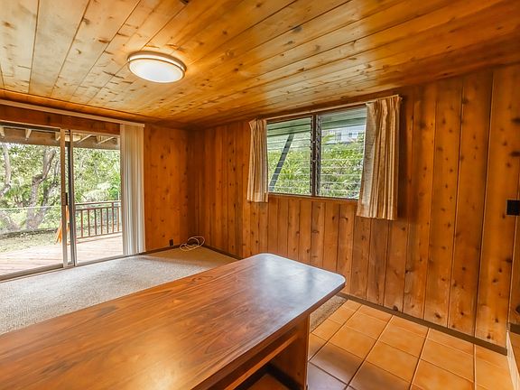 This 1-bedroom 1-bath features warm, wood-paneled walls and ceilings throughout, creating a rustic yet inviting atmosphere. Includes a large, covered deck that overlooks a lush, private yard. Landscaping, water, and sewer are included with rent. Inside, the bright open layout includes a kitchenette with a sink and refrigerator. While there is no built-in stovetop, you are welcome to use a portable burner or hot plate for cooking. This is a shared property with a separate unit located upstairs. Washer and dryer are shared, and street parking only is available. Ideal for someone who values privacy and nature. Conveniently located near Kahaluu Community Park, close to Kahaluu Elementary School, and a short drive to Ko'olau Shopping Center. Approx. 20-30 mins away from Kaneohe Marine Corps Base. Water, Sewer, and Landscaping Included. Tenant is responsible for electric, internet & cable. No pets or smoking allowed.