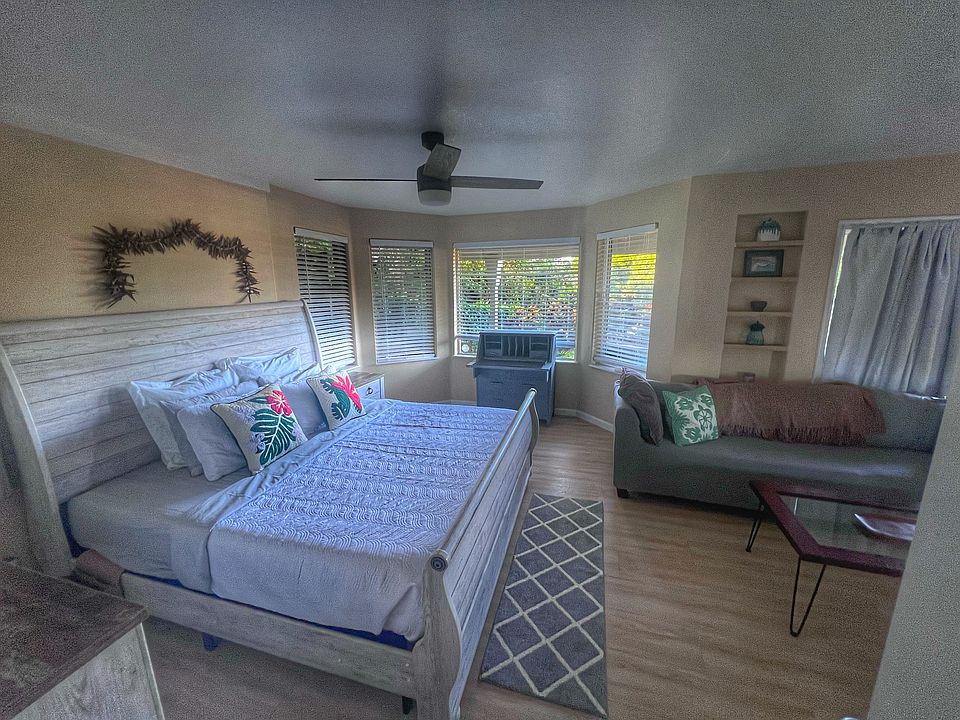 Location, Location, Location! 10 minute drive to Windward Mall Target, Safeway, and soon Planet Fitness and Foodland Farms - 20 mins to MCBH - 30 minute drive to Waikiki/Town. And a 5 minute walk to the water that directly faces the Kaneohe Sandbar! Load up the SUP or Kayak and be at the Sandbar in 15 minutes. Beautiful, furnished, recently remodeled studio apartment. Private gated back yard and Patio area. Open to dogs/cats with discussion. Shared outdoor laundry area. Water, electric, Wi-Fi and trash included. Wall mounted 65" TV that can face the King size bed or the sofa and coffee table. 3 ceiling fans, 2 sliding glass doors and 5 windows allow plenty of ventilation and light. Small kitchen with a full size fridge, electric range and 5 in 1 microwave oven. Walk in shower, stand alone tub and his and her sinks in the bath. 2 large closets for ample storage. 1 parking space provided (2 spots with discussion). The unit is on the bottom floor of our home. The private entrance is down some outdoor steps - so persons with mobility issues, unfortunately this unit isn't for you. 1 year lease with a $1500 security deposit. (Discloser) - This is Kaneohe/Kahalu'u and there are feral chickens in the neighborhood. We have grown to accept/like them but the crowing might annoy some. Current renters moving back to the mainland March 1st. Viewing available after that. Available - March 15th Mahalo! Steve & Melanie