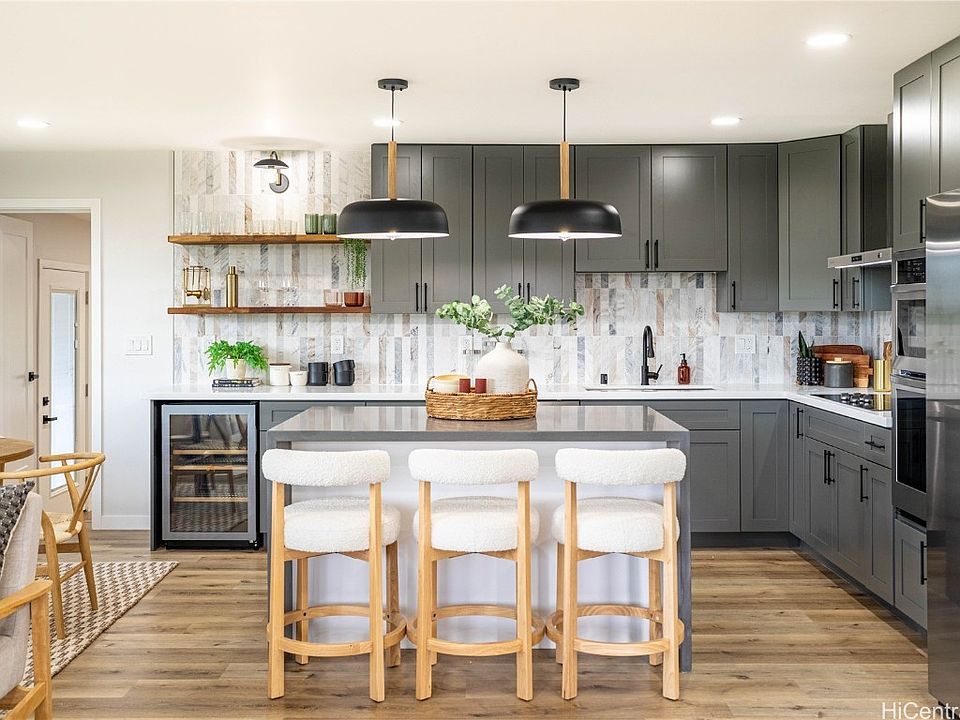 BACK ON MARKET :: Welcome to your private oasis in the lush Kaalaea in Kaneohe. This stunning + expansive property sits on nearly an acre of serene and private land in a desirable and rarely available neighborhood. Meticulously renovated to the highest level, this home seamlessly blends modern design with the tranquility of island living. The home is adorned with contemporary finishes, showcasing a keen attention to detail that elevates every room. Designed with versatility in mind, this property includes a 3-bedroom 3-bath home plus a separate two-bedroom, one-bathroom living area with its own entrance and wet bar. Whether you envision a space for multigenerational living or seek potential rental income, this flexible option caters to a variety of lifestyles and needs. Outside, the expansive lot offers privacy and more than enough space for a garden or farm. The upper level of the lot + country zoning offers the possibility for an additional dwelling with ocean views. Surrounded by lush greenery, the possibilities are endless for expansion and enjoying the outdoors.