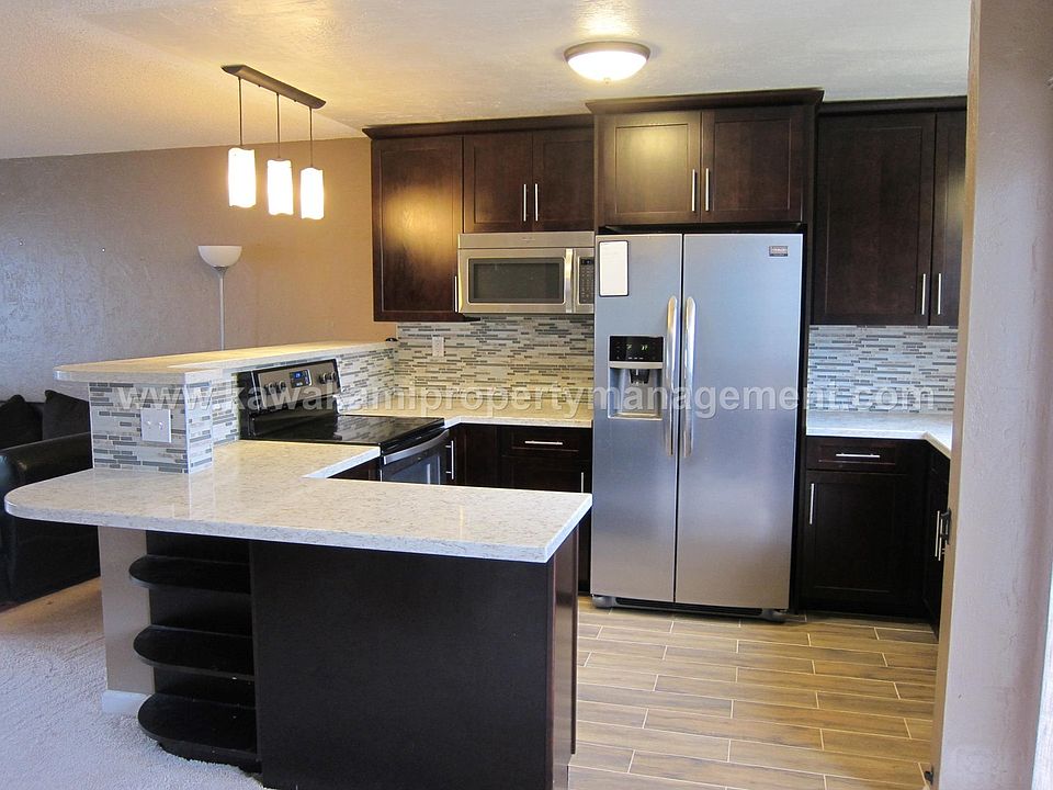 Tropicana Village Haiku (Kaneohe) 3 Bedrooms, 2.5 Bathrooms, 2 Reserved Uncovered Parking Spaces FEATURES: Property Type:Townhome Year Built:1971 Unit Sq. Footage:1,290 Bedroom:3 Bed Bathroom:2- Bath Parking: 2 side-by-side reserved stalls in front of unit Lease Duration:1 year Located within clear view of the picturesque Koolau Mountains, this spacious and updated 2-story, partially furnished 3-bedroom, 2,5 bathroom townhome is available now. The kitchen was renovated with new cabinets & stainless steel appliances. Also renovated were the tub in the main bath, and the stand-up shower in the master bath. Enjoy the outdoors on the back lanai, just off the kitchen. Amenities: in-unit full-size washer and dryer, and 2 assigned parking spaces located side-by-side and directly in front of the unit. This unit is conveniently located near shopping, dining, entertainment and parks. Utilities: Water/sewer is included. Tenant to pay electricity. Renter's insurance is required. No smoking. No pets. FEATURED APPLIANCES: - Electric range/oven - Large Refrigerator w/ ice & water dispenser - Dishwasher - Microwave - Full-size Washer/Dryer Requirements: Minimum credit score of 675 Minimum income of 2.5 times the monthly rent. Non-refundable application fee is $22.00 per adult. For more information or to schedule a showing please contact: Carolyn Murren (R) License #RS-85219 Kawakami Property Management, Inc.