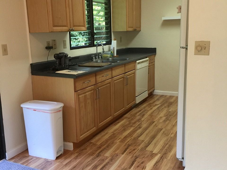 Kaneohe Temple Valley: Tropicana Village Haiku single story townhouse with 3 bedrooms, 2 bathrooms, and 2 parking stalls side by side. Recently renovated with laminate wood flooring through out and tile in the bathrooms. Cool and breezy. Most appliances are new (1 year old), split system air conditioning for the living room /kitchen area. Each room has ceiling fans. Fenced in lanai area. Corner end unit, with undeveloped conservation land behind. Near playground. Across the street from Koolau shopping center (supermarket, food, and theatre). 5-10 mins from Windward mall. Available immediately. Showing on appointments only. Please email me for more information. Rent Includes HI GET, Water, Sewer, and Basic Cable.