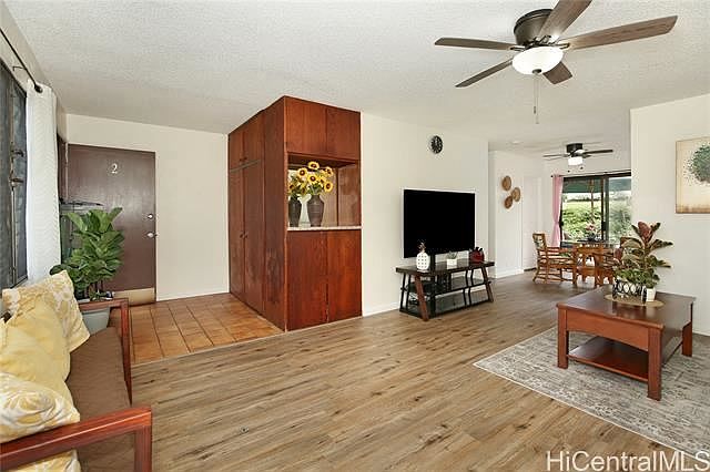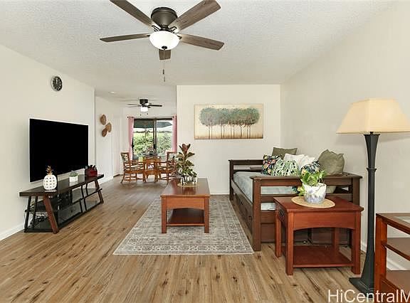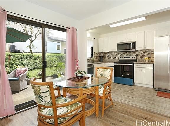 MOTIVATED SELLERS! Excellent opportunity for First Time Homebuyers...Take advantage of 0% down payment USDA or VA Financing (qualifications shall apply). This home is completely move-in ready with newer vinyl plank flooring throughout and ceramic tiles, ceiling fans installed in every room, newer appliances, and updated bathrooms. It also features a spacious lanai outside your open concept kitchen and dining area to enjoy the cool tradewinds the community is known for and has 2 side by side, open parking stalls just steps from your front door. Local shopping mall which includes grocery stores, restaurants, and more is walking distance from home along with public transportation. H3 and Likelike are close by for a short commute to Honolulu and Pearl Harbor.