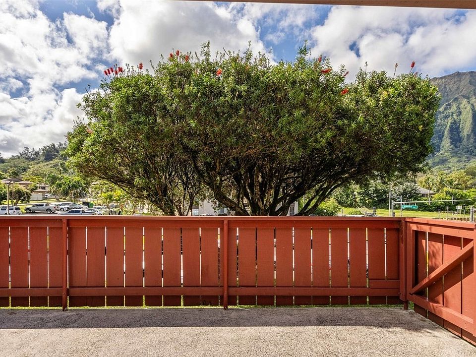 Rarely available single level corner end unit 3 bedroom, 2 bathroom end unit at Tropicana Village-Haiku. Two full sized parking stalls just a few steps outside your front door. A well laid out spacious floor plan with no neighbor above or below. Amenities include playground area and resident manager. This end unit comes with recently installed split ACs, newer kitchen countertop and cabinets, laminate flooring, and new paint throughout. Lots of natural lighting with large glass doors to 2 patio spaces to fully fenced patio spaces for outdoor living and entertaining. Enjoy bbq with friends and take in your morning coffee surrounded by the beauty of the Koolau mountains. Walking distance to Koolau Center (grocery shopping, restaurants, retail) and a quick drive to Kaneohe town, the H3, Pali, and Likelike for short commute to Pearl Harbor, town, and to anywhere on the island. Explore nearby hiking trails, boat harbors, Kaneohe sandbar, and many natural elements this windward coast offers you. This is a perfect blend of comfort and convenience with high owner occupancy. Pet-friendly (please verify). Easy to see, don't wait as this will not last!