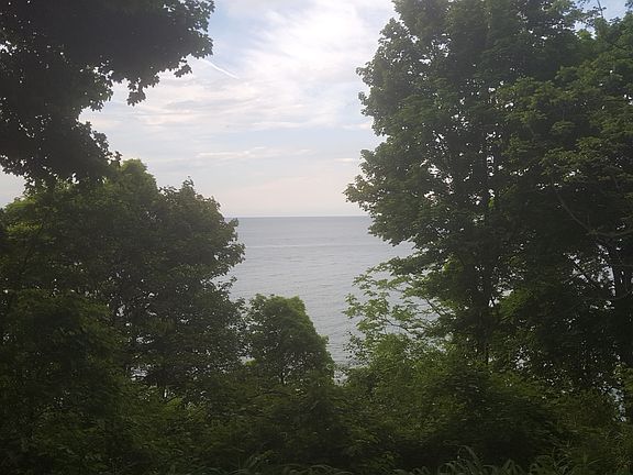 134.50' by 220' lot on top of bluff overlooking Lake Ontario, with awesome distant views and surrounded by towering oak trees and wooded ravine. Site of 2 former cottages, very private!!