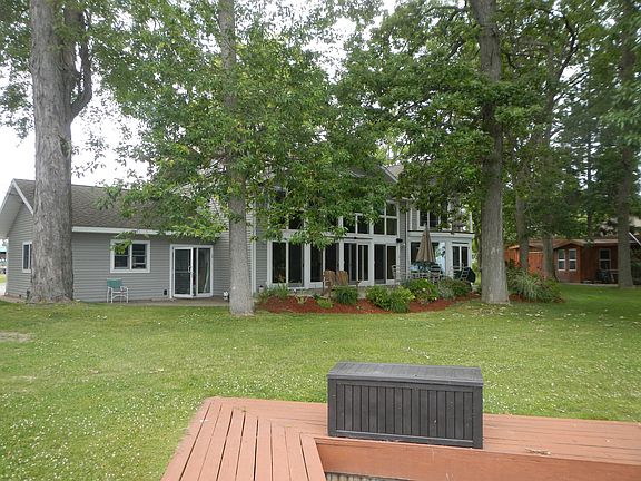 Hard wood floors, tile and carpet, beautiful kitchen with double oven Wolf stove, custom gas fire place, custom cherry office, upstairs theater room. Double lot with in-law separate home. Concrete decks, hot tub room, great sunrises, shore power @ boat slip. Yard has had all the trees trimmed, ready for new owners. 2 car heated garage with 2 out buildings, hot tub glassed in room.