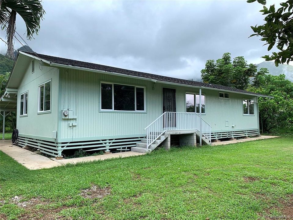 This recently renovated, single family 4 bdrm, 2 bath home is nestled in Ko'olau Mountain Range. It is surrounded in native flora for those seeking a country living escape. There are 4 covered parking with newly installed appliances and updates throughout the home. Enjoy yesterday's Kahalu'u with today's comforts.