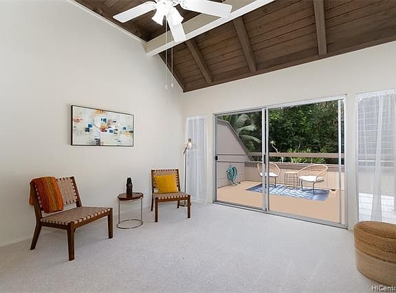 Majestic Koolau mountain views from your back lanai and private garden! Lush green surroundings give this town home a sense of country living. Open layout w/ vaulted ceilings in living/dining area. Lovely master suite on main level w/ access to lanai, full bath and walk-in closet. Downstairs are two bedrooms, full bath and separate laundry room in addition to a common area. Kitchen cabinets are completely refurbished, both bathrooms are updated, all walls and ceilings are freshly painted and new carpet throughout the home. The unit has also a private, fenced yard and is pet friendly! Lanai floor is currently being resurfaced by association. AOAO pool and clubhouse are just down the street. Received multiple offers, no showings at this time. Mahalo.