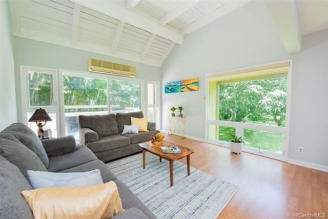 Own a slice of paradise! Private and quiet indoor/outdoor living, surrounded by lushness, backed up to a ravine with majestic mountain views & generous living space. This is one of the largest corner units offered in a fantastic location, an open floor plan with additional windows offering natural light & views of outside greenery. Soaring vaulted ceilings & extra large lanai that is a huge plus when entertaining. Light and bright open kitchen with a walk in pantry. Upgrades include fresh interior paint throughout, newer water heater, bedroom flooring, granite counters, & resurfaced lanai. Split air units located in the living room & all of the bedrooms. Master suite is on the main floor with a huge walk in closet, full bath & patio. Downstairs, you have a flex space, perhaps for an office along with two guest bedrooms, bathroom, & laundry room. All bedroom closets have convenient built in systems. Store your kayak & lounge in your private enclosed manicured yard. There is additional storage area by the front entryway as well! Convenient assigned parking in front. Temple Valley Shopping Center & the bus line is conveniently nearby. Sunday OH 7/10/22 from 1-5pm.