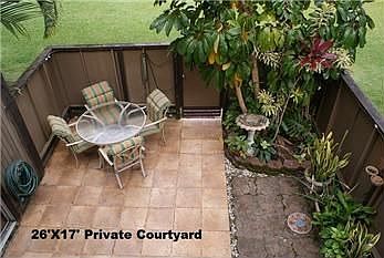 Serenity awaits you in this rarely available 4 bedroom townhouse featuring an inviting courtyard, 2 2nd floor lanai with tree top view, cathedral ceilings and easy care flooring with an interior updated in 2010 and showing pride of ownership.This spacious Club View Gardens end unit is surrounded by greenery in a spectacular park-like setting with the Koolau mountains as a backdrop... a great place to unwind & relax or entertain in style! In this home located away from the noise & congestion of the city youll enjoy Hawaii living at its finest!