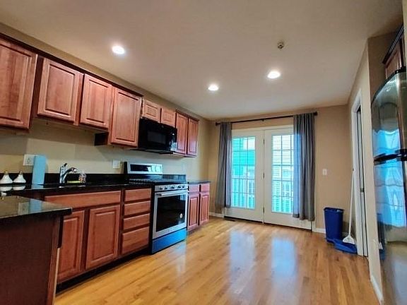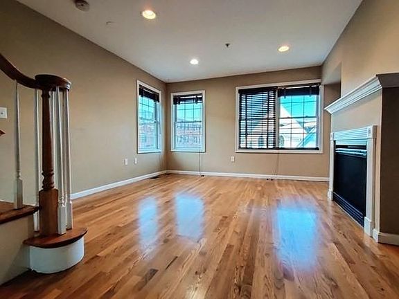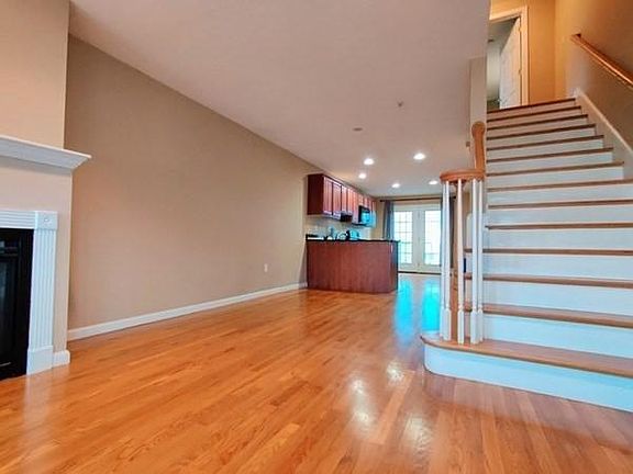 HIGHLY DESIRABLE FIELDSTONE CROSSING LOCALE! RARE FIND! IMMACULATE SUNDRENCHED END-UNIT TOWNHOUSE FEATURING beautiful granite kitchen, fireplaced living room, skylit cathedral master bedroom w/palladium window, generous guest bedroom w/balcony, ceramic baths, hardwood flooring throughout, recess lighting, natural gas heating and hot water, central air, two car garage (tandem), storage and more! Walk to popular Moody Street restaurants, shops and public transportation! Easy access to all major routes!