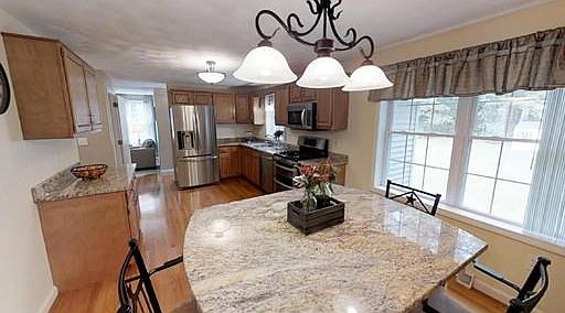 - Kit Dscrp: Main Level, Flooring - Hardwood, Countertops - Stone/Granite/Solid, Kitchen Island, Stainless Steel Appliances
