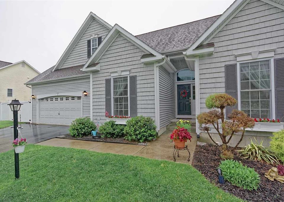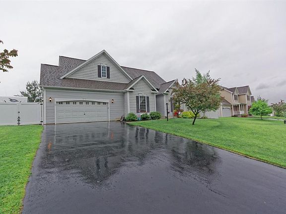 Enjoy beautiful sunsets from the pool or the back deck of this open floor plan 10 year new ranch model in Elena Estates Colonie. Sit by the gas fireplace in the great room with soaring ceiling and gleaming flooring throughout all while saving on your electric bill thanks to the 29 solar panels. Off of the master bedroom enjoy the private porch overlooking the fenced in back yard.