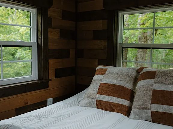 Thoughtfully furnished tiny homesShade from mature hardwoods