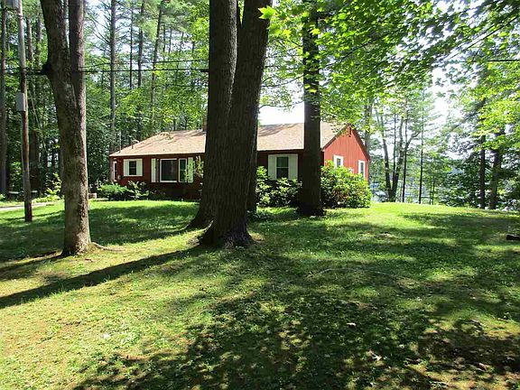 Just in time for Fall...A welcoming and charming WATERFRONT ranch home with 136+/- feet on Silver Lake. Single floor living at its best... Enter the 3 season porch which opens into the galley style kitchen with plenty of cabinets, fully applianced with a double door refrigerator, dishwasher and electric stove. The dining room is graced with a brick wall and glass fronted cabinets as well as a large picture window. The (29'6" x 13'6") expansive fireplaced livingroom, done with knotty pine, has space for everyone. In the livingroom there are two newer sliders to the deck and water with its beautiful water views. The fireplace has an extra easy wood delivery feature, a dumb waiter. The master bedroom has two closets and fits a king size bed . The second bedroom, also spacious, will fit a queen bed and has waterviews. Laundry is located in the spacious bathroom behind closet doors.There is a full walkout basement with a finished large room, presently a Bar. Possibilities. Many additional amenities: bunkhouse with storage. Shed. Circular driveway. Lots of windows and closets. Many updates; artesian well, furnace, roof, Harvey windows. Generator. All on a prime .80 acre WATERFRONT lot. This home is tucked away yet close to exit 20 (5 mins), shopping, restaurants, Lochmere Golf Club, Gunstock is 25 mins.,services and all the Lakes Region has to offer. This home says "come to the lake".