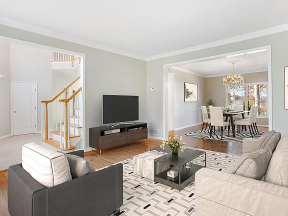 Totally updated brick-front Colonial w/ open & spacious floor plan located in a cul-de-sac in highly desirable Greenwood Meadow development. Grand 2-story foyer w/ beautiful chandelier (with lift). Interior freshly painted, gleaming hardwood floors throughout. Updated kitchen w/ new stainless-steel appliances, oversize center island w/ quartz countertop, opens to 2-story family room w/ wood burning fireplace & second staircase. Bright sunroom overlooking spacious backyard. Master suite offers sitting area, walk-in closet & spa-like bathroom. 3 spacious bedrooms, one w/ en-suite & walk-in closet. Full finished basement w/ half-bath, perfect for recreation & entertainment. A pleasure to see!