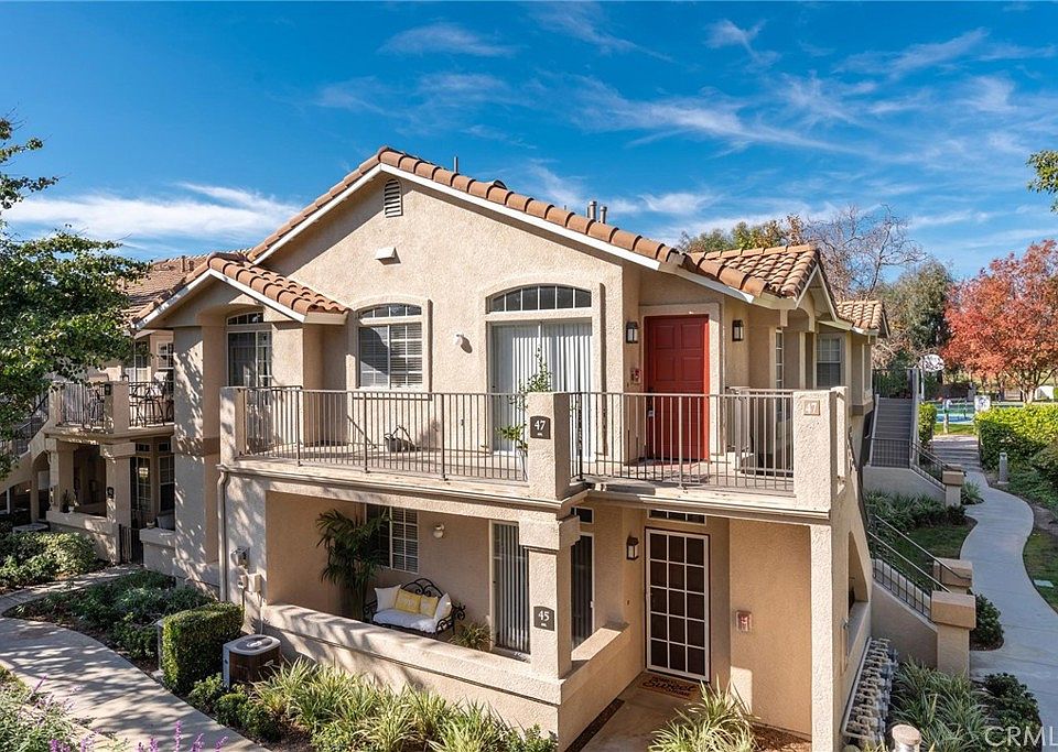 Discover luxury in Rancho Santa Margarita with this charming upper-level corner unit. Featuring double primary bedrooms, each with a full bathroom with dual sinks, an open floor plan highlighted by vaulted ceilings, this home offers a perfect blend of style and convenience. Enjoy the modern kitchen, newer carpets, and a smart home thermostat. The large, gated deck provides a serene outdoor retreat. Ideally, located near Monte Vista Park, Belflora's community pool/spa, schools, shopping, and outdoor activities, this home promises a vibrant lifestyle in a sought after community. Experience comfort and elegance, all in one place. Property was just re-piped in 2025. Property also includes large single car detached garage.