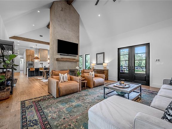 Luxury country living meets coastal charm in this one-of-a-kind estate on just over 2 acres in Lamar, Rockport’s best-kept secret. This unique heritage-modern home was thoughtfully crafted with attention to every detail. The 4BR/4.5BA main residence features soaring ceilings with reclaimed wood beams, engineered hardwood floors, and an open-concept design anchored by a dual-sided faux concrete, wood-burning fireplace. The chef’s kitchen boasts a huge quartz waterfall island, faux concrete vent hood, custom cabinetry, Thermador appliances, and a walk-in pantry with wet bar. The spacious primary suite includes an attached study, walk-in closet, and spa-inspired bath with wet room. Guest suites are all en-suite, plus a loft with custom double bunks offers extra sleeping space. A large laundry with sink, mudroom, and Sonos sound system throughout add comfort and convenience. Step outside to resort-style living with a massive pool and spa, outdoor kitchen, landscape lighting, dog run, and chicken run. A 2BR/2BA guest house with attached oversized boat barn and car/boat ports offers endless possibilities, whether for guests, income potential, or storage for all your coastal toys. Perfect for hunters and fishermen, this ultimate retreat is just minutes from Goose Island State Park, world-class fishing, and duck hunting. Truly a property that blends luxury, functionality, and the coastal lifestyle.