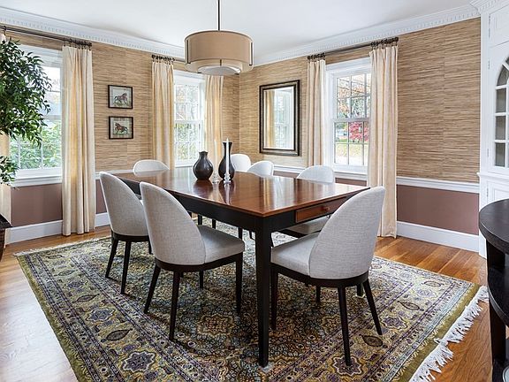 Chestnut Hill ~Tucked on a beautiful tree-lined street, this handsome 4-plus-bedroom 1935 Georgian Colonial-style residence has been lovingly updated. The cook's kitchen, with custom cabinetry, granite counters & large island with prep-station, is filled with light & was designed to offer flexible space for eating & relaxing & opens into the family room with access to the deck, beautifully landscaped yard, & patio. The expansive front-to-back living room, with fireplace, opens to an office/den. A lovely dining room with built-in china cabinet, an office/guest bedroom, & full bathroom complete this level. The second level offers 4 bedrooms, including a primary bedroom with a 2020 en suite bathroom & walk-in closet; 3 generous bedrooms; & full bathroom. The lower level offers a family room with a fireplace, laundry room, storage, & access to the 2 car-garage. Close to Skyline Park, Lost Pond sanctuary trails, shops and restaurants at Chestnut Hill Square, The Street, & Chestnut Hill "T".