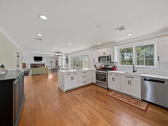 Privacy abounds at this magnificent 1+ acre property nestled high on a knoll in the much sought after executive Arrowhead Neighborhood. This elegant home boasts views of the Boston skyline and stunning evening sunsets! This home with gleaming wood floors throughout features an amazing open layout for gracious living and entertaining inside and out! The main level features a sparkling new kitchen open to the living room with cozy fireplace with doors leading to a delightful patio in the front of the home and a great deck in the back with fun pool area and meticulously landscaped grounds, an elegant dining room and home office. The 2nd level includes a generous primary suite plus 3 spacious bedrooms. The walk up attic provides abundant storage and opportunity to be finished for more living space.The finished lower level walk out is perfect for even more entertaining space! The 2 car garage is heated. This turnkey home is ready for a new owner to enjoy!
