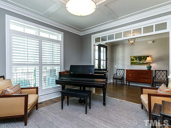 On a cul-de-sac street in Briar Chapel, this STUNNING Homes By Dickerson "Sullivan" plan is not to be missed! 1st floor offers 10ft ceilings, guest suite/study, site-finished hardwoods, granite counters, SS appliances & built-ins. 2nd floor offers large master w/ spa bathroom (pedestal tub and oversized shower) & HUGE closet, 3 add'l bedrooms + bonus room. 3rd floor offers rec room & study. Custom trim finishes, tankless hot water, 3rd garage. Flat yard w/ screened porch & patio backs up to wooded buffer.