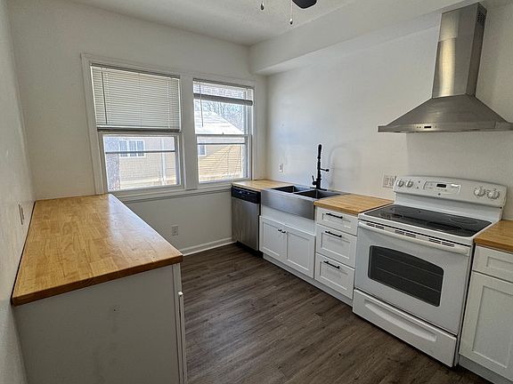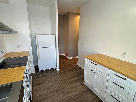 Inside, you'll find large, light-filled rooms, fresh neutral finishes, and durable flooring throughout. The updated kitchen includes modern cabinetry, butcher-block countertops, and ample workspace, while the bathroom has been refreshed with contemporary fixtures and clean design. Bedrooms are generously sized with good closet space.
