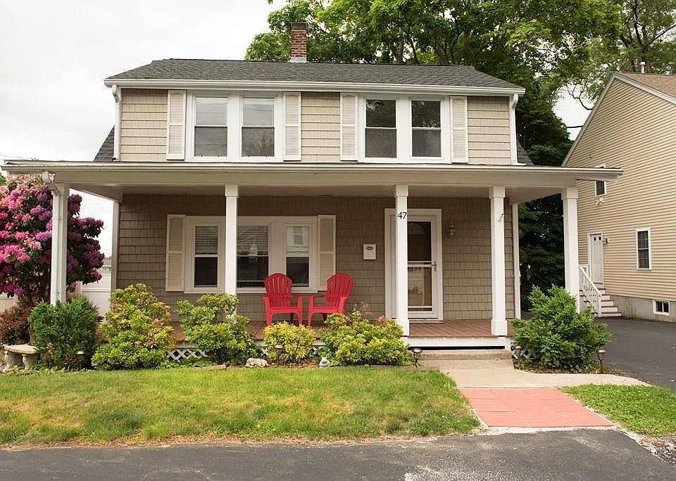 Check out this delightful move in ready 3/4 bedroom Braintree home with 2 full baths. Home sits on a great corner lot with a great fenced in back yard with plenty of room for outdoor activities. Home features 3 bedrooms upstairs with an office and full bathroom. Office could be used to add more space to another bedroom. 1st floor has a large bright hardwood floored living room with pellet stove(That can be removed) that flows great into formal dining room also with hard wood floors. Large work space kitchen with brand new Corian countertops and separate eat in area with access to backyard deck. 1st floor also has a den/guest bedroom and full bath. Some other features - Brand new carpet upstairs but with hardwood floors underneath. Sit out front on your large covered farmer's porch and relax. Some other highlights - Gas cooking, gas hot water, basement game room. Located in a great commuter location with water views at the end of the street. Make your appointment today.