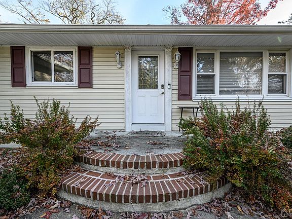 Lovely 3 Bed 2 Bath Custom Ranch with Primary Suite on a prime corner lot is more than meets the eye! Renovated in 2017, well maintained, ready and waiting for you! Granite foyer welcomes you into a spacious, light and bright open layout with gleaming HW flooring, recessed lighting, crisp crown molding and more. Updated Eat-in-Kitchen offers sleek SS appliances, center island, granite counters, 42 premium cream cabinetry and tiled backsplash. Oversized Living rm along with sunsoaked Dining area with slider to the Deck makes for seamless entertaining. Down the hall, the main Full Bath, Laundry closet + 3 generous Bedrooms, inc the Primary Suite. Primary Suite boasts it's own private ensuite bath with stall shower. Large outdoor area offers a Deck, Patio, Shed, lots of yard space, and an oversized Driveway for plenty of guest parking. Don't miss out! Come & see TODAY!! *Showings begin Thursday 5/30*