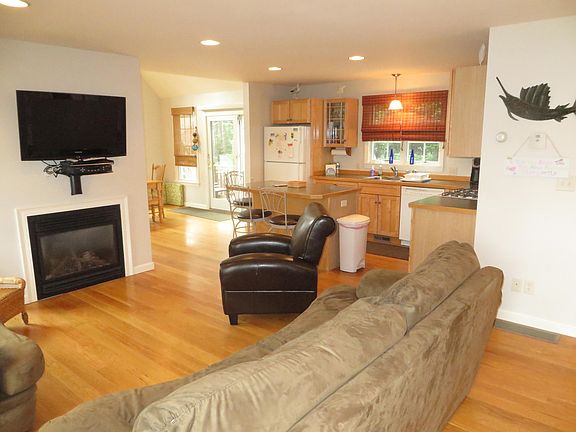 PRIVATE BEACH RIGHTS ON NANTUCKET SOUND! Custom Cape Built New in 2002. Just installed concrete paver walkway, sod lawn and state of the art irrigation system. Open Concept kitchen, living, dining combination with gas fireplace and flat screen TV. Hardwood flooring throughout main floor with kitchen island as focal point. Large bath with shower completes first floor. Upstairs you will find 2 large light and bright bedrooms and a hall bath with tub. Central AC installed in 2016. Full dry basement houses laundry with potential for approximately 700 additional sq. ft. of living space. Outside shower, private yard and newer shed. Could also be a desirable rental. Passing Title Five in hand.