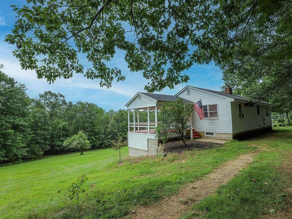 Tucked away on over 2 acres this country ranch boasts a large open yard, several apple trees, a detached garage with pine finishes and a spacious porch directly off the kitchen! This home offers two bedrooms, an open concept kitchen/dining/living room, bright entryway with cathedral ceiling and updated bathroom. You will also find a finished office or a cozy den in the walkout basement which additionally has ample storage space and a laundry area. Enjoy the wildlife here, your own flower or vegetable gardens and everything else this ready to move in home has to offer!