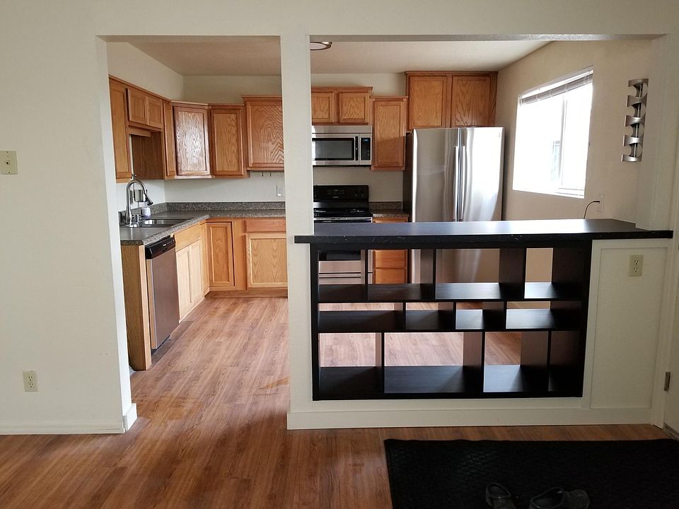 Beautifully Remodeled 2 bedroom, 1 bath apartment with new stainless steel appliances: French door refrigerator with ice maker, Built in microwave hood with external venting, new self-cleaning electric range, new dishwasher & disposal. New mini-split high efficiency air conditioner. Hard surface vinyl plank flooring. New bathroom with Ikea vanity with pull-out storage drawers, new walk in shower with frosted frameless glass doors. Built in closet systems, new windows & window coverings. New LED Lighting. Built in USB chargers ( super cool & functional) in kitchen wall outlet. Private external entrance. Off street parking. Washer/dryer hookup for stacked unit with ventless dryer. There are also two coin-op laundry facilities on site with private lockers for laundry supplies (also fully remodeled). Complex is currently finalizing renovation so don't let the construction mess fool you. We have almost completed remodeling every part of this apartment complex. As weather permits we'll be starting on exterior. Ideal Management is employed by and acting as agent for the property owner and represents the property owner in all transactions. Ideal Management has 2 Active Colorado Real Estate Brokers. Open House Friday 2pm- 6pm / Saturday11am -3pm / Sunday 12-4 Owners pays heat, water, and trash. Tenant pays electric, cable/internet only. No smoking of any kind in unit and no pets. Must have established rental history. $50 application fee with Ideal Management. Don't pay to complete application through Zillow, management company will still charge the $50 fee to process their application. We DO NOT require application fee prior to scheduling an appointment. Beware of fake adds on Facebook -- someone took our pictures and listed this apartment requiring app fee prior to any showing!!