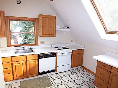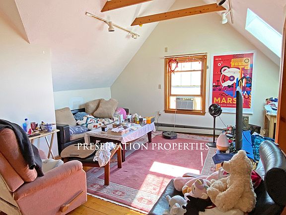 Available for 4/1/2025 move in. Victorian home with a lovely apartment on the top floor. Built in 1840, but the apartment is bright and sunny late 1990's style with a nice kitchen and modern bath, both with skylights. Vaulted ceilings in the LR and BR, also with skylights. Laundry machines right in the kitchen. 2nd BR is smaller but workable, with rounded wall beneath the turret. Doubles as a great office & guest room. Huge deck on ground floor with some yard space to share. Two parking spaces with walk right up to the side door. Contact for private tour! ID# 25920