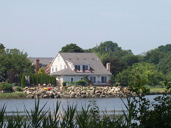 Water views from almost every window of this newly reconstructed Nantucket style Colonial with over 5,000 square feet of living space. This stunning 5 bedroom home inspires from every angle. Just over 1/3 acre direct waterfront with flagstone patios, panoramic views, deck, balcony, yard and large driveway, great for bike riding and gathering with friendly neighbors. The outdoor living space complete with beautifully designed 12 foot stone fireplace makes this the ultimate spot to lounge, entertain and relax. Watch the sunset all year round. Perfect place for the summer “staycation”, barbeque or early evening happy hours with neighbors. A bird lovers paradise with resident swans, and a variety of other birds that call the Ash Creek their seasonal home. The gourmet granite kitchen has a commercial grade range, double ovens, hood with warming bulbs, paneled refrigerator and Bosch dishwasher that opens to family room with full stone fireplace. Double sets of French doors lead to mahogany deck and stone patios connected by a flagstone walk with a free flowing design. The Banquet sized dining room is comfortable for over one dozen guests with crown molding and French doors, great to open and enjoy the breeze while dining with family and friends. Master bedroom suite has 2 sets of French doors leading to balcony with unobstructed water views and spacious walk in closet. Master Bath is complete with granite double vanity, and gracious shower. Crowning this lovely home, is the game/media room just a couple of steps up to the 3rd floor with enough space for a pool table, large sectional sofa, flat screen TV and room to spare. Walk to the beach and town, or stroll along the Ash Creek Marsh Walk to the marina Bike to train and walk to the future new train station just under 1 mile or a 3 minute drive.