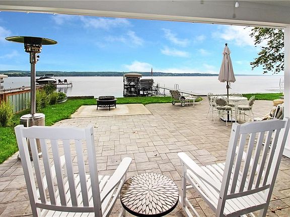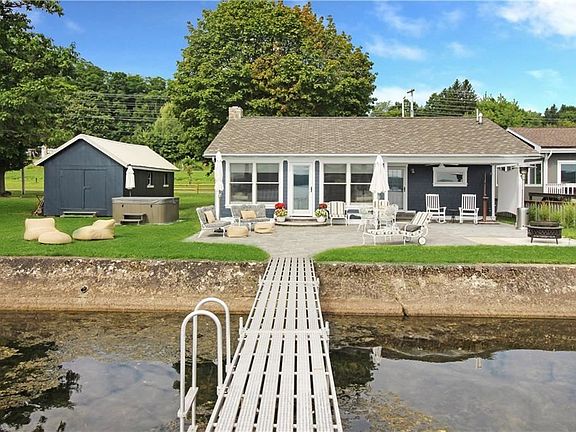 Imagine yourself in this pristine lakefront home in one of the most desirable locations on the lake. Completely updated and renovated, this year-round cottage features high-end amenities and an eclectic, appealing and refreshing décor . Custom wainscoting, stone fireplace, reclaimed barn wood floors, custom blinds and privacy shades, new kitchen, custom built-in bunk beds, custom-built loft space, a 5 person hot tub and 56 Ft. of Alumidock with swim platform are only a few of the features. The amazing lake view goes on forever and the spacious lawn adds to the open feeling. A large storage shed holds all of your lake equipment. This property is "dressed to impress" and is sold completely furnished and move-in ready. Call today for a private showing. Ask for list of renovations/upgrades.