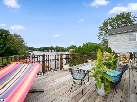 Lakefront Living! Upper and Lower lakefront decks span the back of this beautifully updated home, private boat launch for boats and toys, even a heated bar make this your personal paradise! Rollover to beautiful lake views, Master and 2nd Bedroom have sliders to upper deck. Updated Bath has Jetted Tub and new Grohe Thermostatic shower system. Updated 3rd floor offers more space, brand new Velux Skylights w Solar powered open-close and blinds, a family room, sleeping space, full bath and a private entrance, makes this an ideal guest suite! Living Rm w Stone Fireplace for Cold Nights, sliders to deck for the Summer. Kitchen w breakfast bar and dining room w sliders to lower entertainment deck! And Central air! New Roof! NJ Largest Lake w gas boats, jet skis, sailing, kayaking and more! ONLY 1 Hr from NYC! BOM