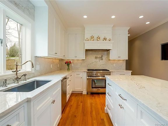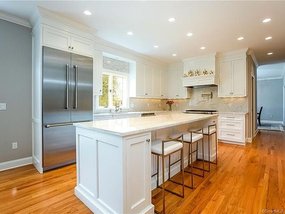 If you are seeking a stunning kitchen and family room for today's living and entertaining look no further. The "heart of the home" was thoughtfully designed and fabulously appointed with the best of everything: custom cabinetry, Dolce Vita Quartzite counters, top of the line appliances and designer fixtures. You will fall in love with the style and beauty of the space. The home is located in Briardale Estates, one of South Wilton's desirable cul de sacs. The 4 bedroom colonial is perfectly sited on professionally landscaped property with uplighting and an expansion tiered stone entryway. The first floor has a smart floor plan, with an open feeling and great flow: Living Room with gas fireplace, spacious and bright dining room, office, magnificent kitchen/family room and half bath. Lovely master suite with full bath and large walk in closet,3 additional bedrooms with ample closet space and full bath complete the second floor. Finished lower level has walk out to landscaped back yard, a new full bath and laundry center with custom cabinetry and was designed for efficiency and luxury. The lower level space is flexible and can easily be adapted from family and exercise rooms to a au pair or in-law suite with private entrance. The 2 car garage has plenty of storage and the mudroom is equipped with custom cabinetry. This home and property has been meticulously maintained. Too many updates to list, come tour, you will want to call 47 Briardale, home!