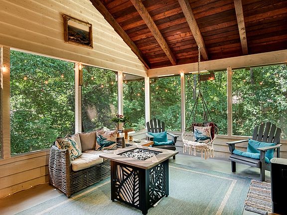 Continue to show, backup offers ok. The Soaring High Ceilings and Custom Contemporary Design will leave you Breathless! 2021-2022: New Interior Paint, Fenced Yard, Deck Stained, 2019-2020: New Roof, Lennox HVAC, Windows, Exterior Paint, Gorgeous Vinyl Plank flooring, New Kitchen w/Granite Counters, Soft Close White Cabinets, Stainless Appliances. And there's more --- New Doors including 3 Sets of French Doors, New Handcrafted Staircase and Railings. Bathrooms Updated. 3 Bedrooms, plus an Office/Den w/closet that could be used for sleeping, Gameroom, Workout Room, Studio. Awesome Floorplan that affords every family member the privacy they seek. Upper Bedroom has it's own Covered Balcony. Bonus "Secret Hangout" above the Garage is a semi finished room w/ladder steps to access. Sunroom off Living Space w/tall windows, great office space. Relax on your Screen Porch 16.7 X 11.7 w/Hot Tub hookup. Double Garage & Workshop. Optimum Internet! Mountain Stream - walk in accessible. Some furnishings are negotiable. Yard has Rhododendron, Crepe Myrtle, Hibiscus, Magnolia Tree and a peaceful bird sanctuary. Only 5 minutes to Downtown Franklin! 3 Hour Notice to Show please.