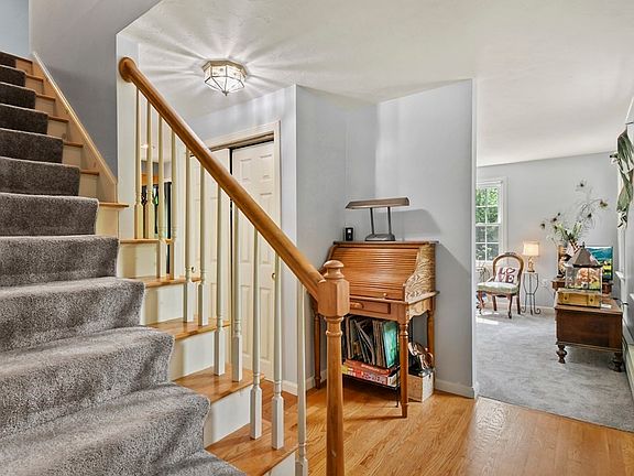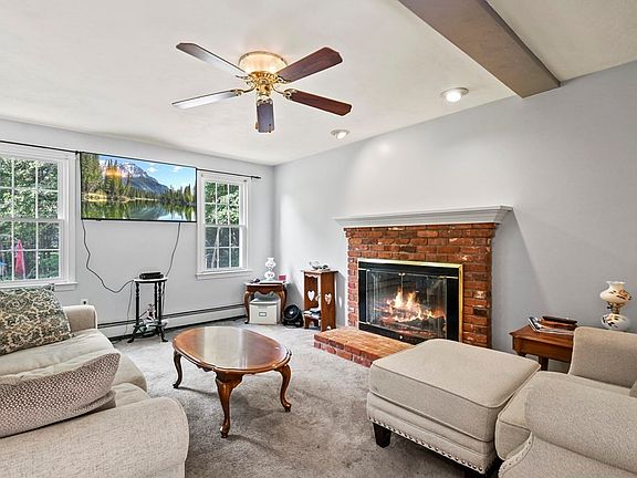Welcome home to this meticulously maintained Colonial! Enter into the fireplaced living room adorned with beautiful, beamed ceilings, creating a warm and inviting atmosphere. The formal family room & dining room offer elegant spaces for gatherings & entertaining. The kitchen boasts new floors, ample countertop & cabinet space, and connects seamlessly to the private back deck providing a delightful indoor-outdoor experience. Upstairs, you will find three spacious bedrooms, including a main bedroom with an en-suite bath, offering comfort and privacy. The large bonus room above the attached two-car garage adds versatility to the layout. Outside, the large yard features a new Trex deck, perfect for relaxing and enjoying the outdoors. With fresh paint throughout, the house feels rejuvenated and move-in ready! New Roof 2022! The basement also presents an opportunity for expansion, allowing you to create even more living space to suit your needs! Come see all this home has to offer!