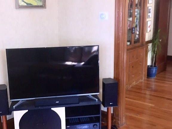NO FEE! September 1: Bright and spacious apartment on first floor of lovely Presentation Hill house on the Newton line. Eat-in-kitchen with dishwasher and gas stove. Dining room with built-in china cabinet. Two good-sized bedrooms with ample closet space. Beautiful woodwork and hardwood floors. Enjoy the deck and patio. Easy access to Mass Pike, walk to Oak Square. Video available on request.