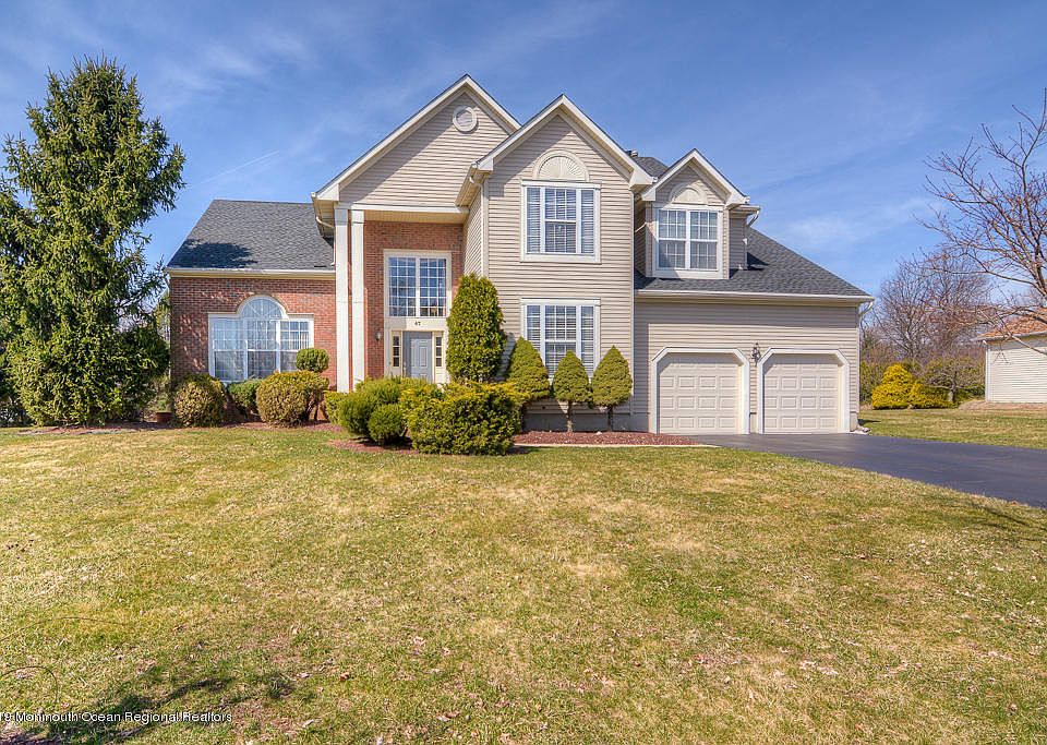 Motivated Seller! Pride of ownership shows in this meticulously kept Carlton Model at Ardena Acres. Brick and Vinyl exterior elevation, 5 Bedrooms, 3 full baths includes a 1st floor bedroom. Spacious eat in kitchen with upgraded porcelain flooring and stainless steel appliances. Family room with wood burning fireplace. 2 story living and dining room with hardwood flooring. Spacious Master suite with full bath, his and her vanities, shower and soaking tub. Full finished basement with laminate flooring. Walk out to a magnificent rear yard with deck, fenced in built in pool and lovely landscaped and wooded lot. Public utilities, Northern Howell location close to shopping. Excellent schools . Original owner has updated stainless appliances, HVAC mechanicals, pool liner, garage doors and roof
