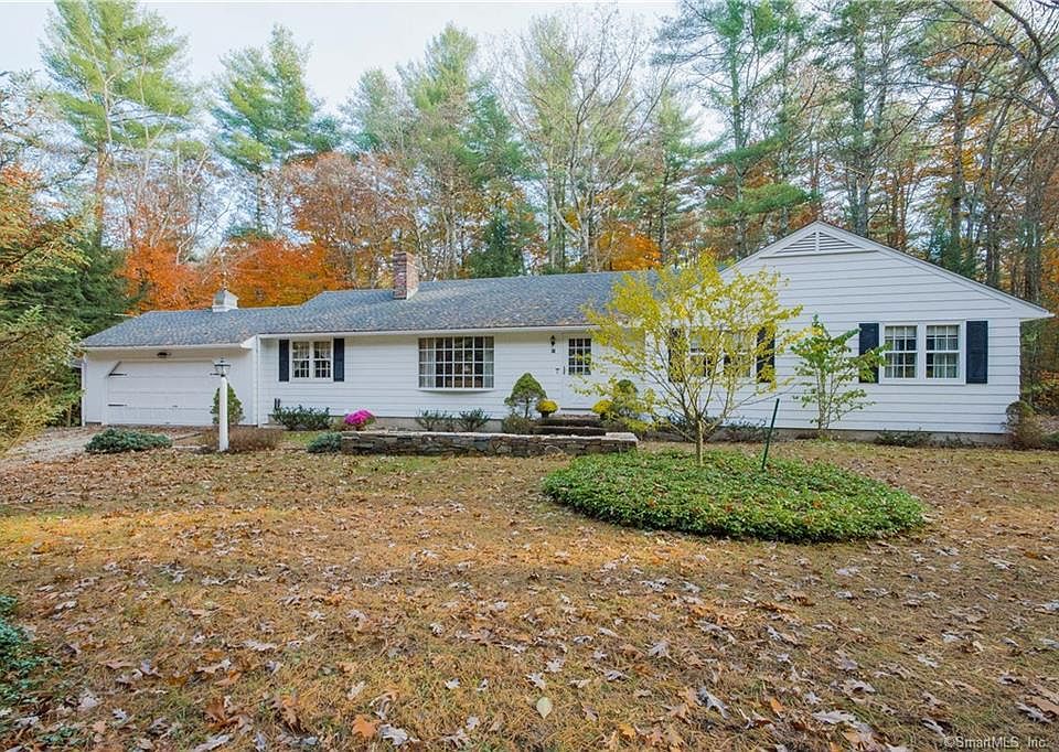 Delightful ranch in West Simsbury location. One floor living with a nice finished basement with a fireplace. House needs updating. Exterior stone patio at walk out basement. Additional parking in behind the garage. 2 fireplaces one in living room and one in lower level, granite countertops in kitchen, lots of storage in lower level, many closets, large 3.23 acre lot with lots of privacy. Interior freshly painted exterior.