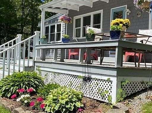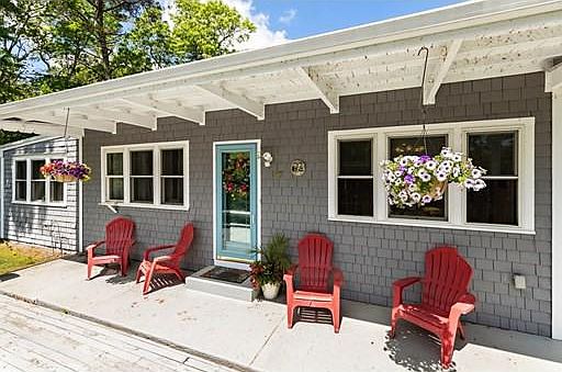 Lake Life anyone??? Across from Great Herring Pond, up on a cute knoll sits this charming 2 bedroom ranch. Walking across the oversized porch through the front door you immediately feel welcomed,cozy and relaxed- the high ceilings, wide pine flooring and open floor plan are a delight. There are plenty of windows to let in so much natural light, and there is a seamless flow from the kitchen into the living area. A slight step down to the den area and you have a door to the private backyard patio area with firepit! Just a few steps upstairs and there are two almost identical bedrooms on each side, with an updated bathroom right in the center. The Full, dry, walkout basement includes the laundry area and plenty of storage. **Recent updates include all new Anderson windows and doors, new Wide Pine flooring on 2nd floor, updated electrical service, new water heater, heating system and updated, tiled bathroom.