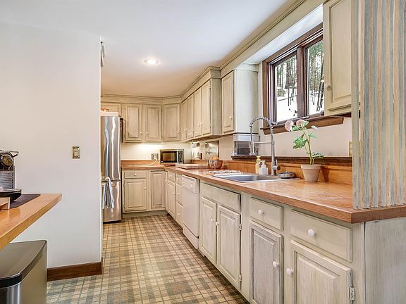 This impressive multi-level contemporary features 3BRs/2.5BAs & over 3,000 sqft. of living space, all situated on a spacious 2-acre lot. Upon entering the 2-car garage, you'll find a well-appointed mudroom w/closet & slate flooring.6 steps up to the eat-in kitchen, equipped w/abundant cabinets, generous counter space, & pellet stove. A short descent leads to the sunroom, bathed in natural light, w/brick floor & access to the front yard. Down the hall, discover a laundry room w/updated appliances, a home gym, & half bath. Returning to the kitchen & ascending six steps reveals the impressive 2-story family room w/a wood-burning fireplace, hardwood floors, vaulted ceiling, & built-in bookcases. An adjacent bonus room, ideal for a home office, enhances the functionality of this space. The second floor hosts a primary suite w/a walk-in closet, an additional closet, & a three-quarter bath. 2 more bedrooms & a full bathroom w/double sinks complete this level. The residence is adorned with fresh paint, blinds, & numerous new lighting fixtures and a whole house generator. Outside, the property features two landscaped terraces - one with artificial lawn & the other adorned w/stones, pebbles, fire pit, propane heater, BBQ, portable jacuzzi, & a pool. The meticulous landscaping includes extensive gardening, perennial plantings, & a woodshed about 30ft. from the house. Just 5 minutes from downtown Peterborough & a short drive to US-202 for an easy commute to Jaffrey or Hillsborough.