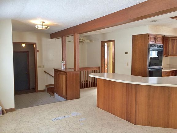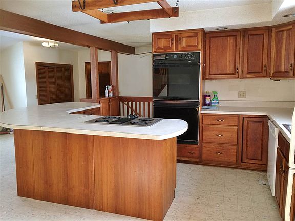 This home offers a large Kitchen with cherry cabinets with center island, double ovens, wood floors with a bedroom on the first level. Three baths one with laundry hook up on main floor attached two car garage with direct entry in to a mud room. New roof, vinyl siding level yard with a deck off the back of house.
