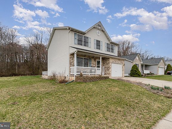 Beautiful home with 4 bedrooms and 2.5 baths located in Heritage Hills at the end of a cul-de-sac. This home greets you with a welcoming front porch just in time to enjoy the warmer weather. Step into the 2 story hardwood foyer with open staircase. To the left is a formal dining room, or you can use it as a separate living room, or an office or playroom...anything you want it to be. The eat-in kitchen includes all appliances and has lots of pretty grey cabinets for storage. The big family room is open to the kitchen so you aren't left out of any entertaining fun. There is even a half bath on this level for convenience. Upstairs, the owners suite is huge and includes a walk-in closet and your own private bathroom. 3 more nice sized bedrooms and another full bath finish up this level. The full size basement gives you plenty of space for storage, or you can finish it if you ever want more living space. Outside, there is a 2 level deck that can fit lots of conversation pieces. Beyond that is a nice level yard to run around in. Hurry, this home located close to the Maryland line will not be here for long!