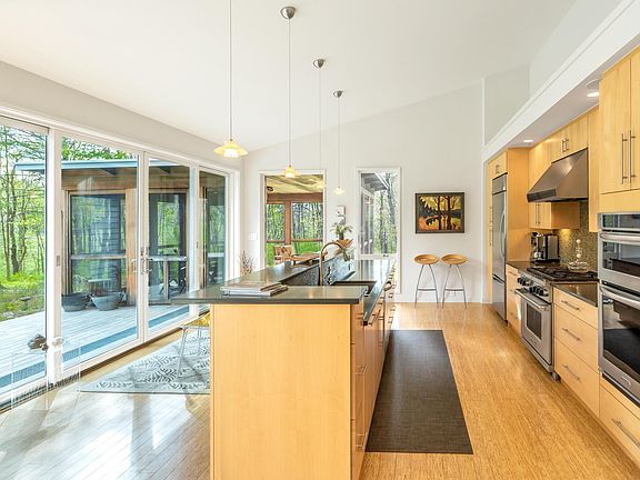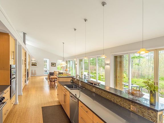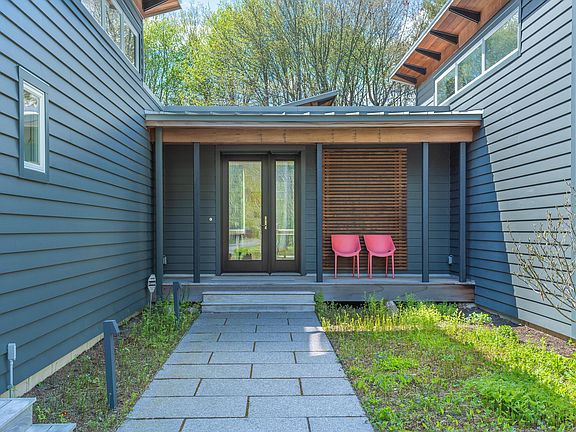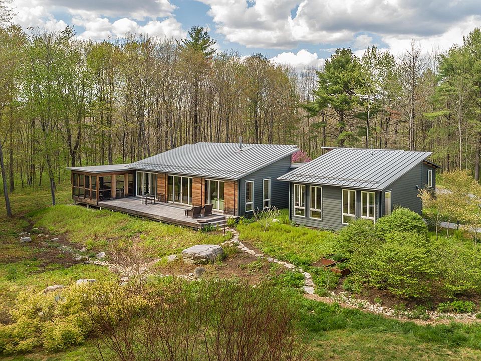 The future of housing is here. Set back from a winding cul-de-sac road on nearly 6 acres in a premier Cumberland location, this prefabricated ''Glidehouse'' from Blu Homes of California reveals the promise of designing a better way of life. Composed of 4 pods that were assembled on-site using a proprietary team of builders and engineers, this home boasts high performance and cutting edge design. Oriented to the south to capture year-round solar gain, the floorplan is elegant and livable. A large entry-way welcomes you home, with a functional mudroom off the large 2 car garage. A separate suite with an attached office or workout room provides a private wing on the southeastern end of the home. Entering into the large open concept living space you feel transported into nature, with three 12' sliding doors overlooking a Garapa wood deck and a stunning landscape. Through the designer kitchen, you drift out to a screened porch that seamlessly marries inside and out, with a front row seat to the abundant flora and fauna of Maine. Down a private hallway, a well appointed primary suite offers a peaceful retreat, and an office or 3rd bedroom provides additional quiet space. With radiant heat throughout and four heat pumps for additional heating and cooling, the home is highly efficient and built with sustainability in mind. A full unfinished basement provides exceptional storage space. In a highly desirable location only minutes to Cumberland Center, Yarmouth Village, and Casco Bay, this property expands on what's possible and supports a lifestyle without compromise.